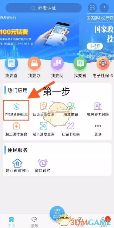 1. 开启“青海人社通”APP,轻点“养老待遇资格认证”按钮。