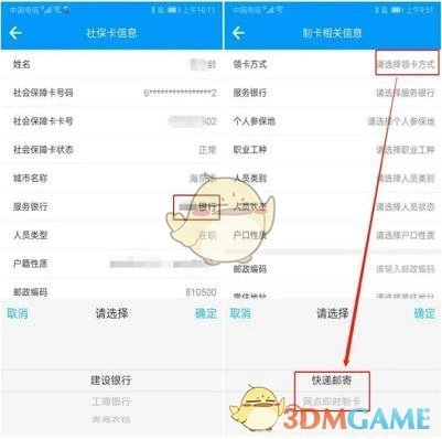 3、选择领卡方式时,若长期在省外居住,可选择邮寄领卡,需填写具体领卡地址、联系人姓名及电话。符合制卡数据标准的,每月5日或20日(遇节假日顺延)进入制卡流程,30个工作日后邮寄到家。要是居住在省内,可通过“青海人社通”手机APP首页“我要查”→“社保卡”→“社保卡即时制卡网点查询”,查看就近的发卡银行即时制卡网点,线上申领后5日内,持有效身份证件到银行快速制卡,立等可取。
