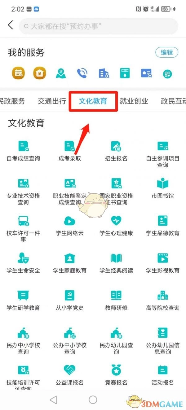 2. 于APP首页寻觅“更多服务”,进而找到“文化教育”。