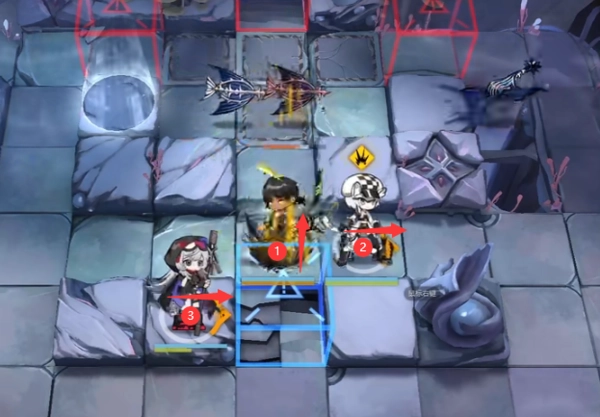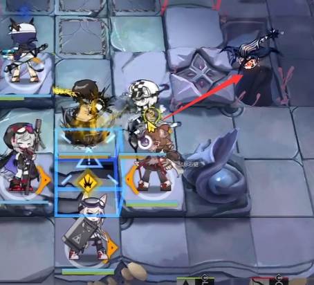 然后如图位置部署崖心(向右)→ 元素奶(向右)