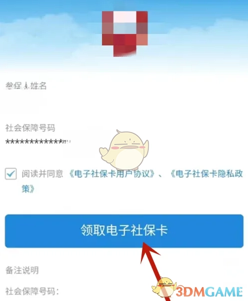 4、完成身份验证之后,进入领取页面,点击领取电子社保卡。