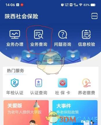 1. 登录陕西社会保险,点击“业务查询”即可进入。