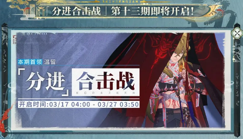 分进合击战第十三期内容为新首领战斗,此次战斗以温留作为主要的boss首领。开放时间从2025年3月17日至3月27日。玩家在全部战胜后,可直接领取分进合击战的奖励,奖励包含游戏货币与抽卡道具。此外,玩家还有一定概率从首领战斗宝箱中获取角色碎片。