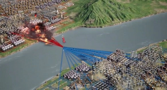 而水战则更是开辟了另一个维度的全新战场,有一套完全不同于陆地的规则和系统做辅助。陆地上那套占地、行军、布防的战术打法已经完全不管用,在水战上玩家们要面对的敌人除了有敌方部队外,同时还有江流专属的地形要素。