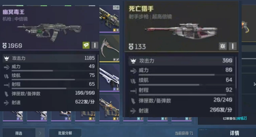 幽冥毒王在续航能力方面表现更为出色,而死亡猎手在威力与射程上更具优势。大家可依据这两款枪械的特性,挑选最适配的场景来使用。此外,暗影之伤也是较为值得推荐的武器。尽管它看似只是一把较为普通的手枪,射程有限,整体弹夹容量也不算大,但其威力相当可观,而且具备独特的技能设定:该枪械射出的第一发子弹会产生爆炸效果,使得普通攻击转变为带有额外属性加成的攻击。