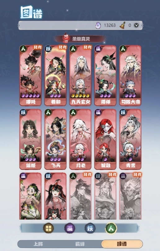 当前游戏里总计有9个羁绊组,通过获取真灵或真灵元神来提升真灵的星级。依照羁绊组内的要求,当达到不同的总星级时,便能获取对应的属性提升以及仙玉奖励。