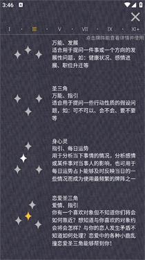 4、等待卡牌翻开,软件会弹出各类卡牌的介绍以及占卜的结果等内容。