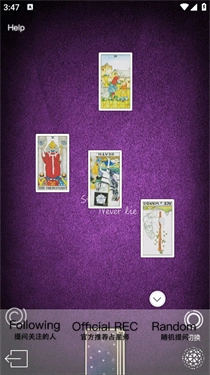 1、在内用户点击右下角的“塔罗、雷诺曼、神谕卡”选项,即可进入各类抽牌页面。