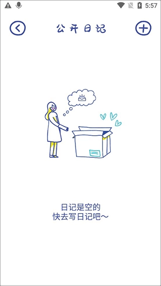 3、这样就能开始写日记了,写完后点击右上角那个包裹形状的小图标就能完成保存。