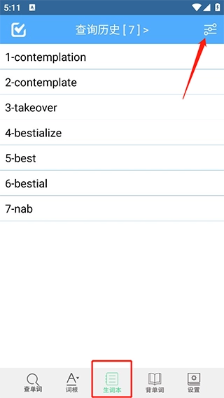 我们提供生词本功能,您可以根据需求对生词本里的单词选择按字母顺序排列、按添加时间排序或者随机展示;同时,生词本中的生词还能在背单词模块进行复习巩固。