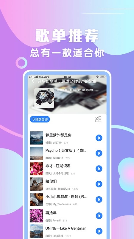 1. 炫铃声拥有海量资源供用户使用,能让你实时查看壁纸与歌单,轻松获取心仪之物。