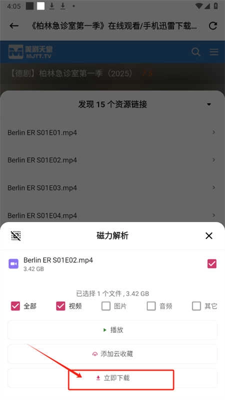 4、当资源链接被成功识别后,界面会显示对应的资源列表。