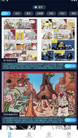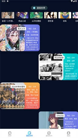 点击“漫画世界”栏目,查看经典漫画的详细介绍和用户评分,进一步了解作品背景。