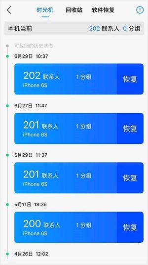 随时找回:误删的联系人,随时能在月光宝盒里,借助回收站或者时光机找回。