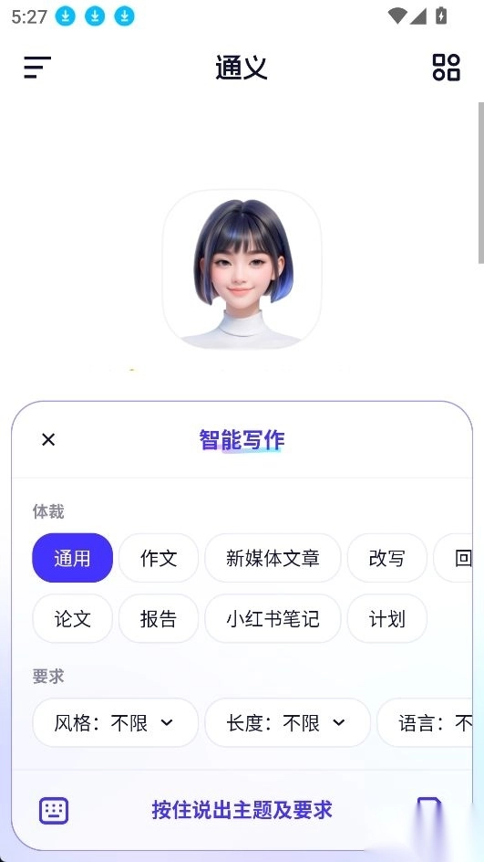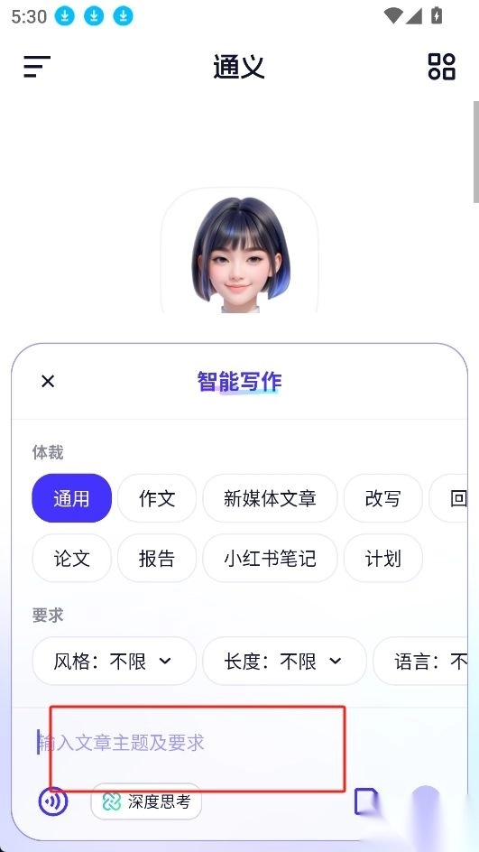 在聊天框输入主题和具体要求;