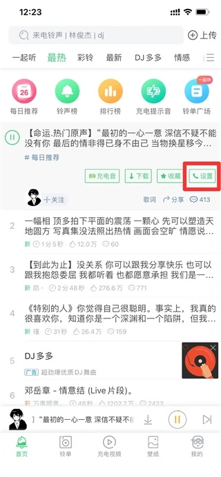 选择想要的音乐后,点击设置