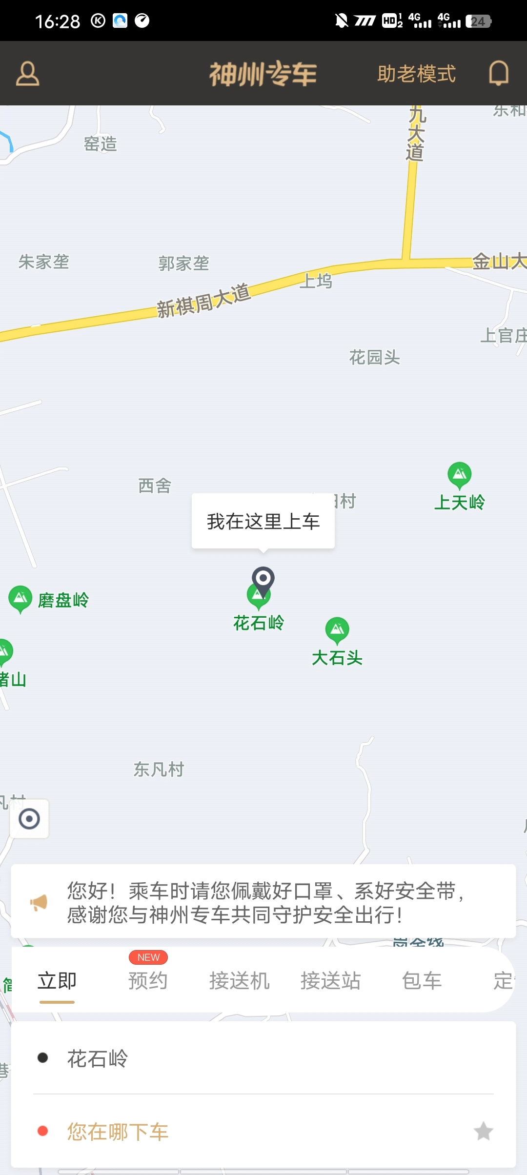 1. 点击进入软件,在立即叫车、预约、接送机、接送站、包车等多种类型中,选择立即叫车选项,随后输入下车地址。