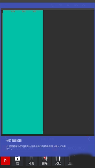 小编在此以音频剪辑为例,我们先挑选一段要处理的音频文件并打开(也能够现场录制),紧接着就能看到该文件在音频视图中展开。在这个视图里,可以对音频长度进行剪辑,最长能达到100毫秒。
