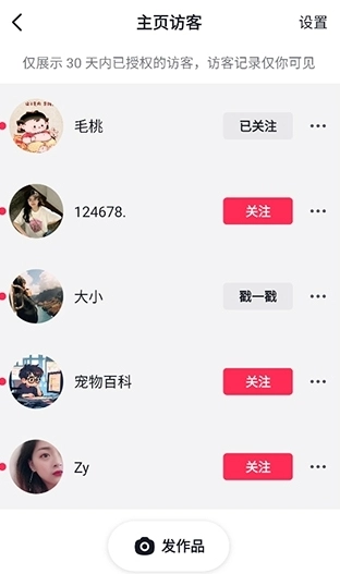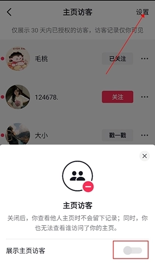 4、开启该功能后,即可查看30天内的访客记录;同时,当此功能处于开启状态时,你访问他人主页,对方也会收到相应通知。