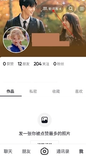 2、进入“我的”界面,点击页面右上方的“新访客”图标按钮