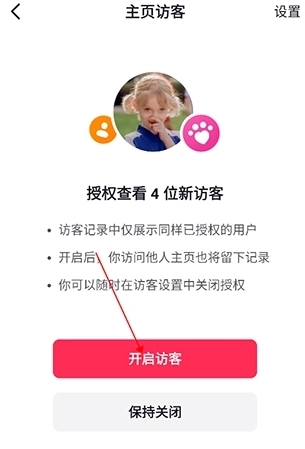 3、进入主页访客界面后,点击页面顶部的“开启访客”按钮