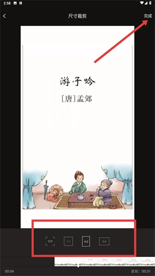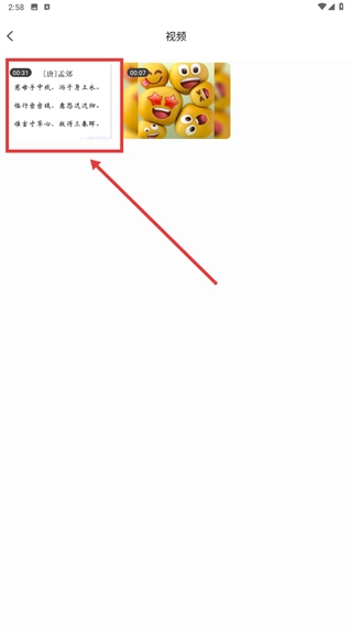 2、进入视频选择页面,选中目标视频(例如包含《游子吟》相关内容的视频),随后进入裁剪流程。