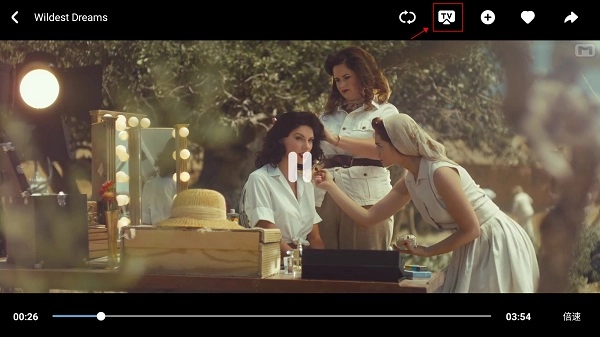 3、点击屏幕任意位置,便会弹出菜单选项,在右上方的位置找到“TV”图标,音悦台会自动搜索投屏设备,之后等待连接成功将MV投屏到电视或其他智能硬件设备。
