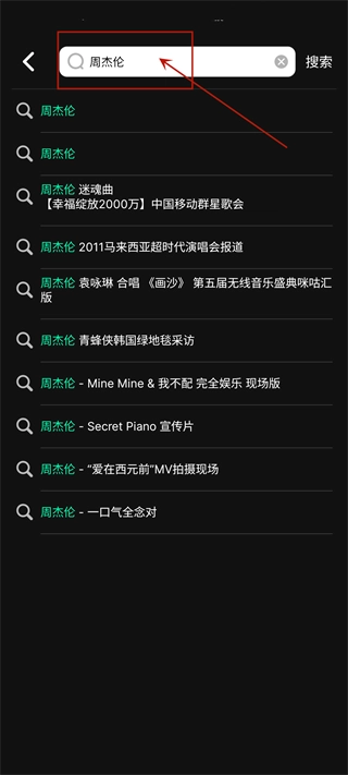 4、若想精准的找到自己想要的歌曲歌手,只需点击搜索框并在其中输入自己想要查看的内容即可。