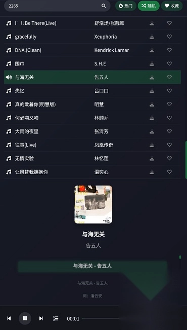 用户能够借助输入歌曲名称、歌手姓名等方式,迅速且准确地定位到想要的音乐,搜索结果里还会呈现歌曲时长、热度等内容,便于用户进行筛选。