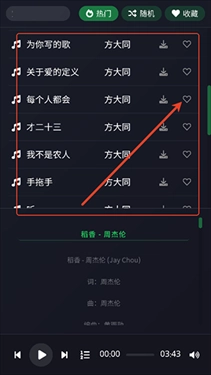 1、直接筛选喜欢的歌曲,点击爱心标志。