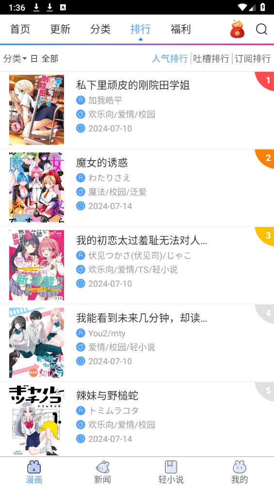 1、找到“轻小说”功能栏,点击进入后查找自己想看的小说。