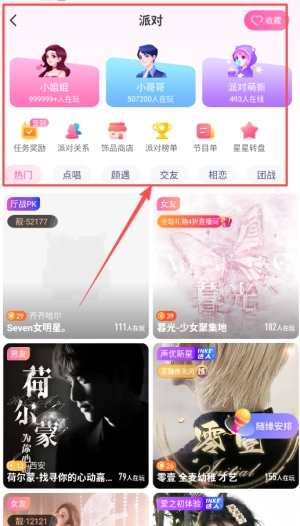 3. 在线派对:涵盖团队竞技、社交互动、颜值评级、相亲联谊等多元派对玩法,全方位契合用户的不同需求。