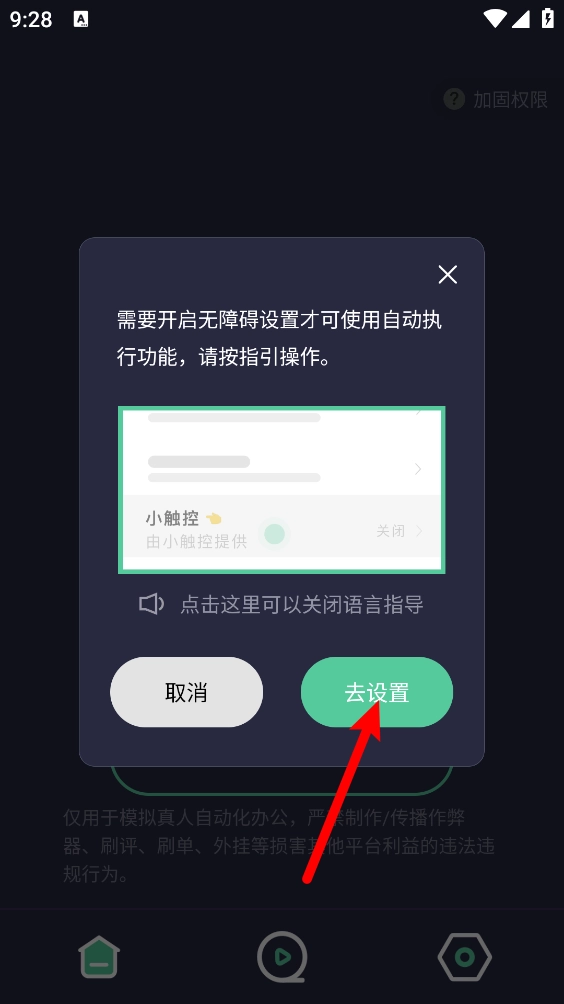 小触控,免费自动化点击工具,帮助大家自动化重复屏幕点击操作的软件。通过用户预设的执行脚本,在设定好的时间或条件下自动完成模拟点击,适用于需要频繁、重复触屏的场景,只需开启辅助权限并设置悬浮窗,就能让设备按计划自动执行操作。