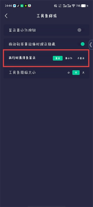 4、找到执行时悬浮条显示,根据需求选择即可。