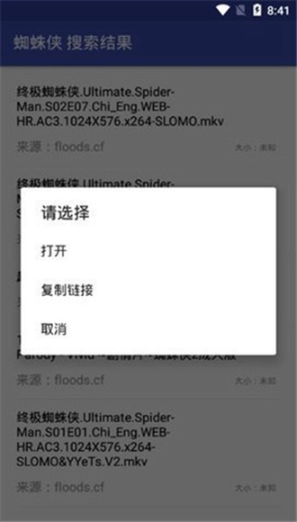 2、搜索相应关键词之后会出现对应的磁力资源,可以直接打开也可以选择复制。