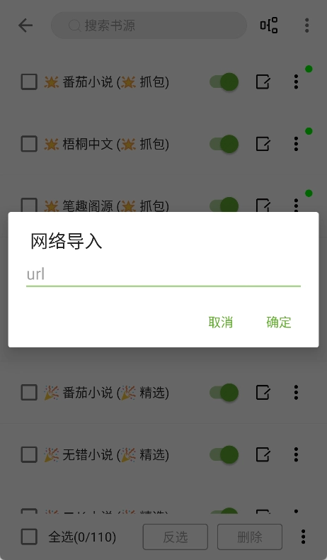 若您选择网络导入方式,需知晓书源的网络地址,准确输入书源的URL链接,确认地址无误后点击【确定】按钮,系统将自动从该网络地址导入书源。