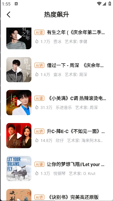 我们可以借助钢琴曲谱排名信息的预览功能,来迅速定位到自己需要的曲谱内容。