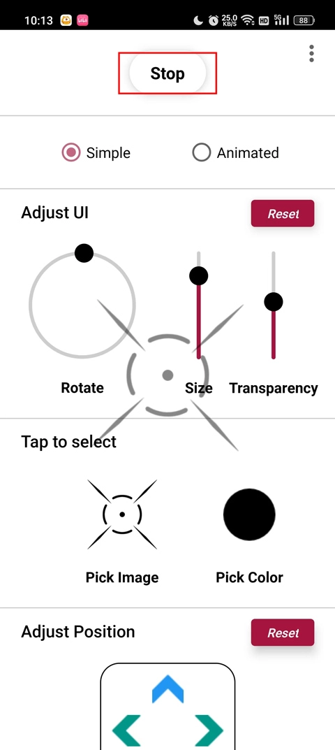 4、最后在adjust position里调整准星在屏幕上的位置,建议点击右上角的reset按钮。