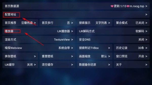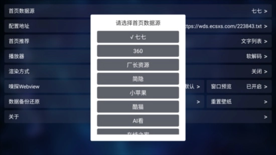 在设置内容中调整播放地址以及播放器的播放行驶。