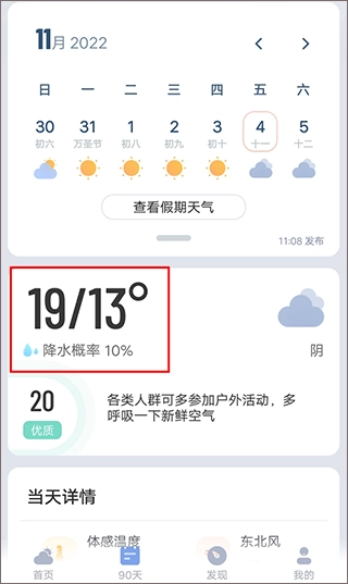 若你想详细了解某一天的天气状况,只需点击对应的日期,就能进入该日期的详情页面,查看气温、生活指数等信息。这样便于你更合理地规划在当地的穿着和出行安排。