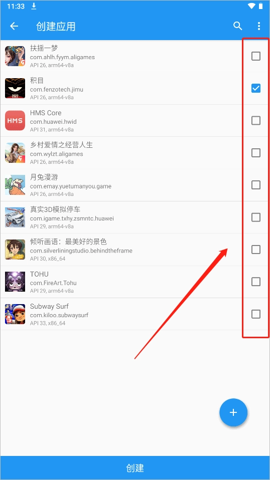 点击右下角的按钮展开后,就能看到创建应用、模块管理和模块这些选项。