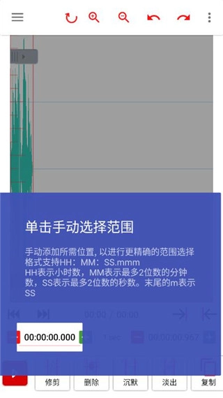 4、在该区域中我们可以手动选择音频的范围,非常的精确。