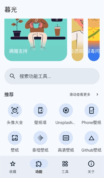3.整合了壁纸、头像、解析、查询、编辑等各类实用工具,可一站式覆盖从娱乐休闲到日常办公的多元需求