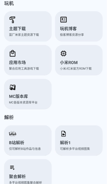 2、往下拉,我们能够看到玩机、短视频解析功能。