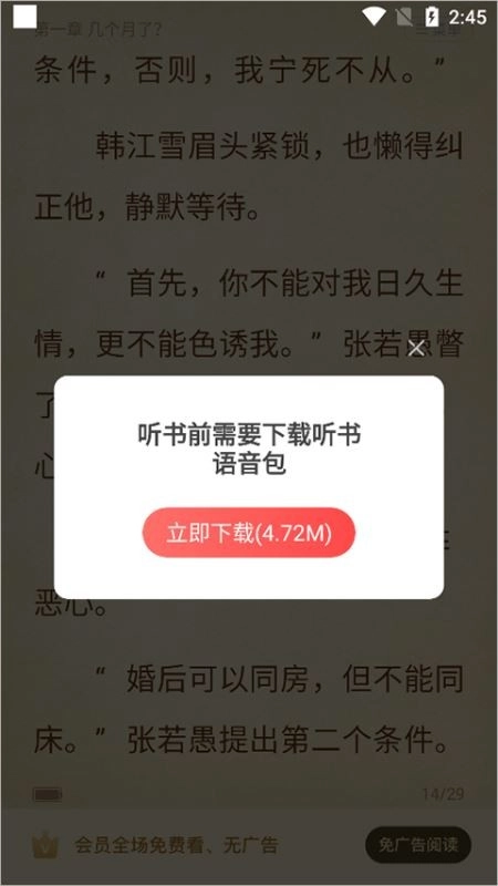 3、语音听书功能 提供多种音色的语音包,支持0.8x至2.0x的听书倍速调节,让您解放双眼,轻松追书