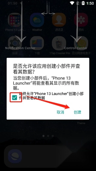 5、首次进入主屏幕时,请勾选允许创建桌面小部件并读取数据的选项。