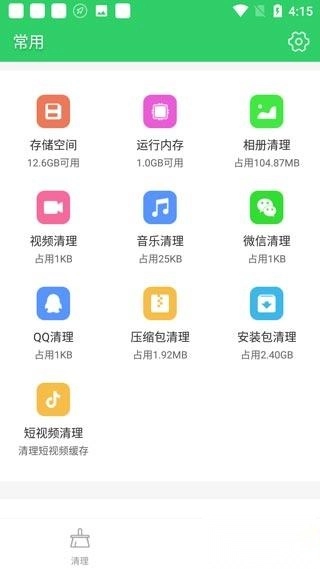 5、点击常用,可以在一个个分类功能中进行清理垃圾
