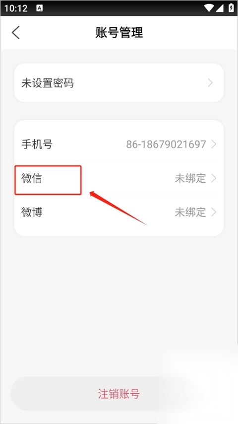 3、打开界面后点击【微信】即可进行绑定了。