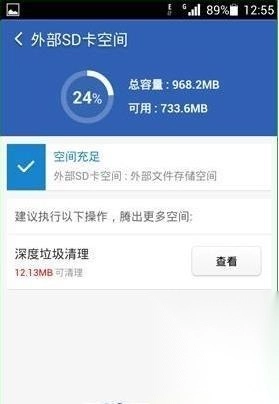 3、同理SD卡占用情况也可以看到如图,深度垃圾清理,查看可以跳到垃圾清理页面