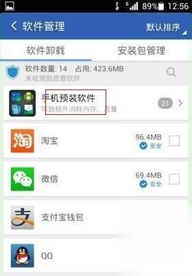 8、软件管理,点开后自动检测预装软件和非预装软件,选中一个软件后,可以点击备份,自动保存清理大师目录下,如果想删除备份,可以点安装包管理,选中备份,一键清理就可以了